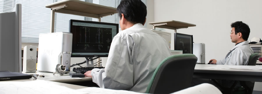 管理部門では、お客様からの引き合い・受注に対して、製作手配から納期管理、品質管理、出荷まで全体を管理しています。当社は大型重量品の一貫生産を得意としています。さらに設計から材料調達・製缶溶接・機械加工・機械組立・輸送までの受注もあれば、頂いた図面での製缶溶接のみ、機械加工のみ等の様々な要望にお応えします。お客様のご要望を的確に把握し、設計部門・製造部門に確実に伝達します。社内一貫生産体制により高品質・短納期・低価格を実現し、お客様のニーズに対応できる生産体制を整えています。