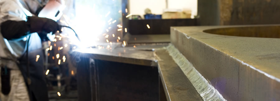 製缶溶接部門では、製缶組み立て工程と溶接工程を分業しています。それぞれ長年培ってきた高度なノウハウ・技術を蓄積した熟練作業者が確実な作業を行い、高品質な製品をつくり上げていきます。クレーン設備も充実しており、当社が得意とする大型製品は重量50トンまで製作可能です。また、小物部品・板金部品や溶接ロボットでの量産体制も整えております。